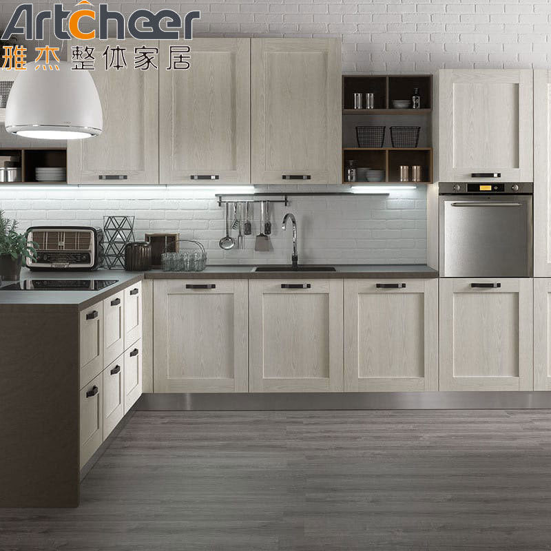 Gabinete de cocina de madera de diseño minimalista con armario de medio bullnose y gris claro